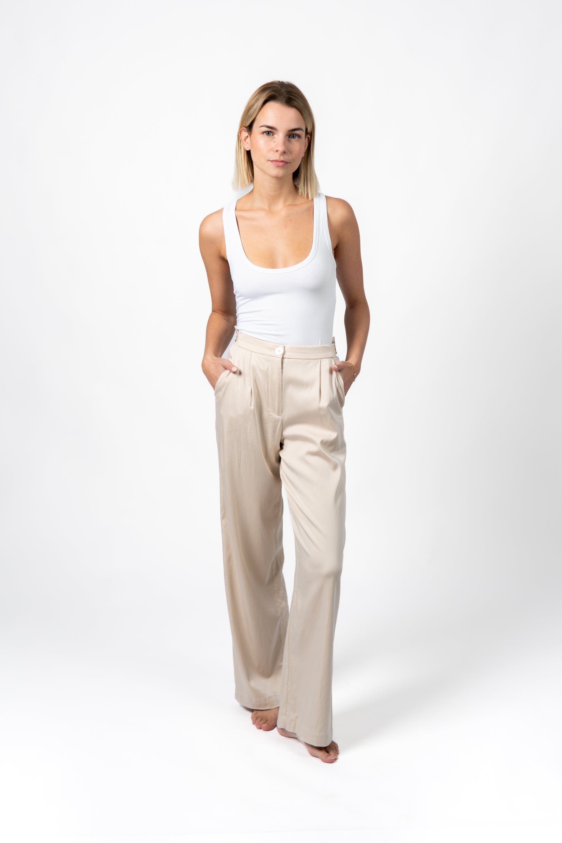 Flowy, silky, and effortlessly chic, the Calypso pants bring a touch of ethereal elegance to any outfit. Their light beige hue and graceful movement make them a go-to for moments when you want to feel luxurious yet grounded. Like Calypso, the nymph of the sea, these pants capture a sense of enchantment and freedom.