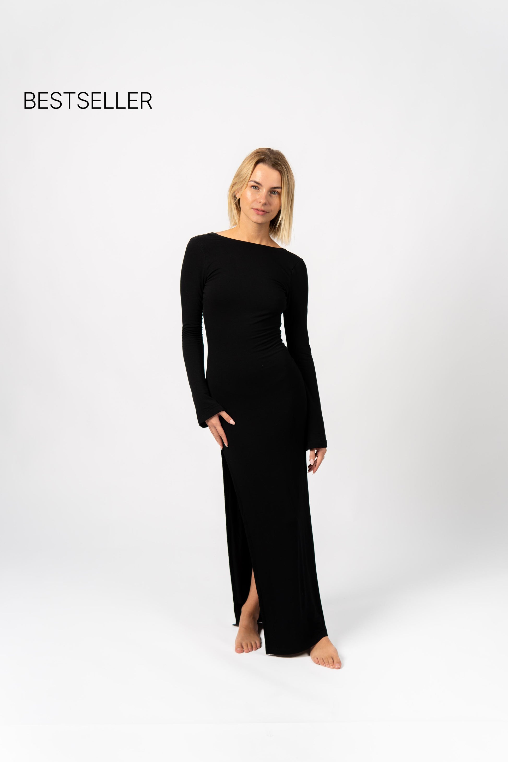 A sultry yet elegant masterpiece, the NYX dress is designed for the goddess who thrives in the allure of mystery. Its super-soft fabric, long sleeves, and deep back cut exude sensual sophistication, making it perfect for evenings where confidence meets elegance. When you wear the NYX dress, you embody the enigmatic essence of Nyx, the Greek goddess of the night, stepping effortlessly into your power.